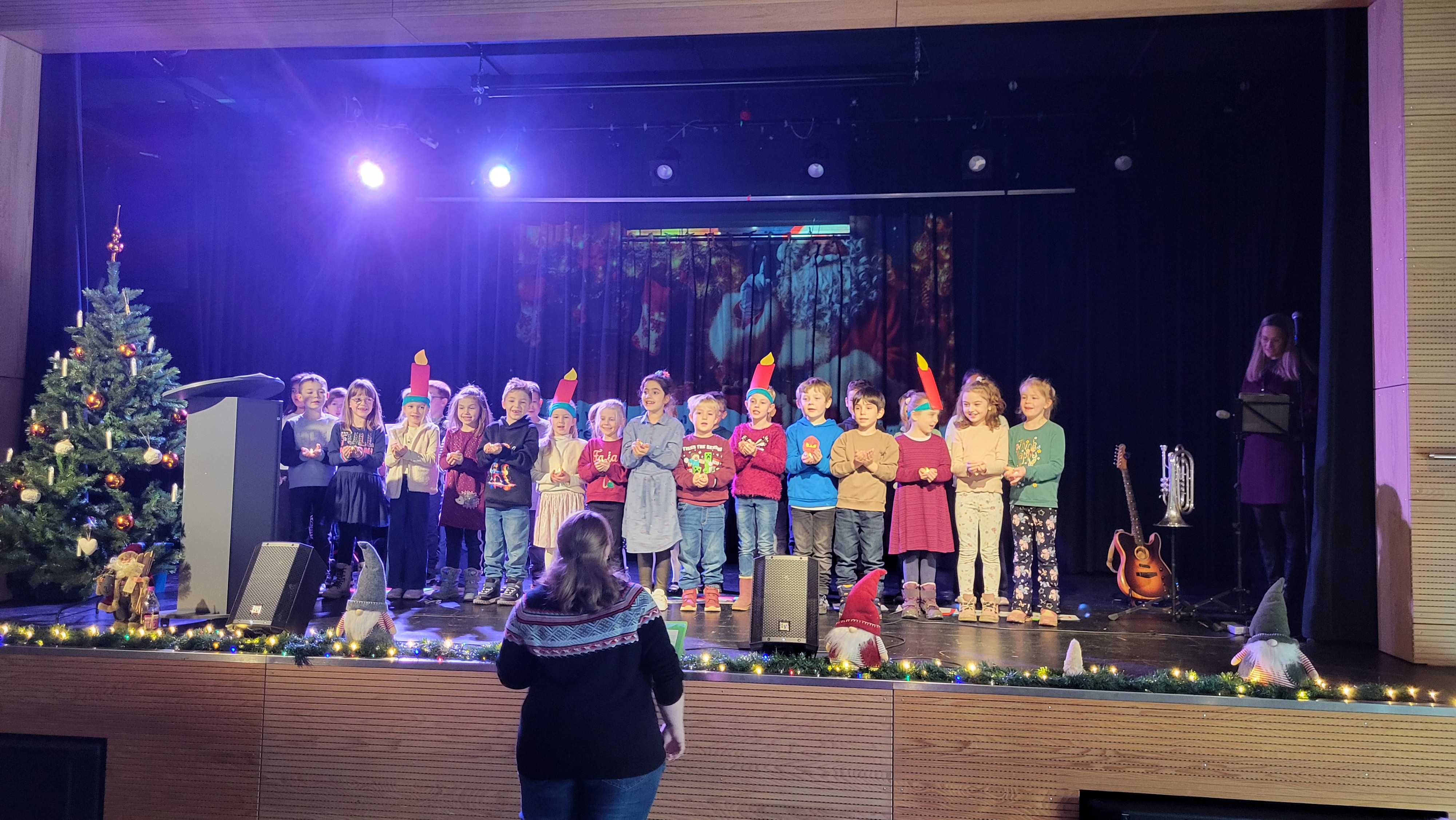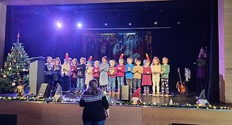 Die Kinder präsentierten einige moderne, wie auch klassische Weihnachtslieder und Gedichte. Das Publikum war begeistert von der Darbietung. Die Erstklässler*innen wurden mit einem großen Applaus und einem kleinen Geschenk belohnt.