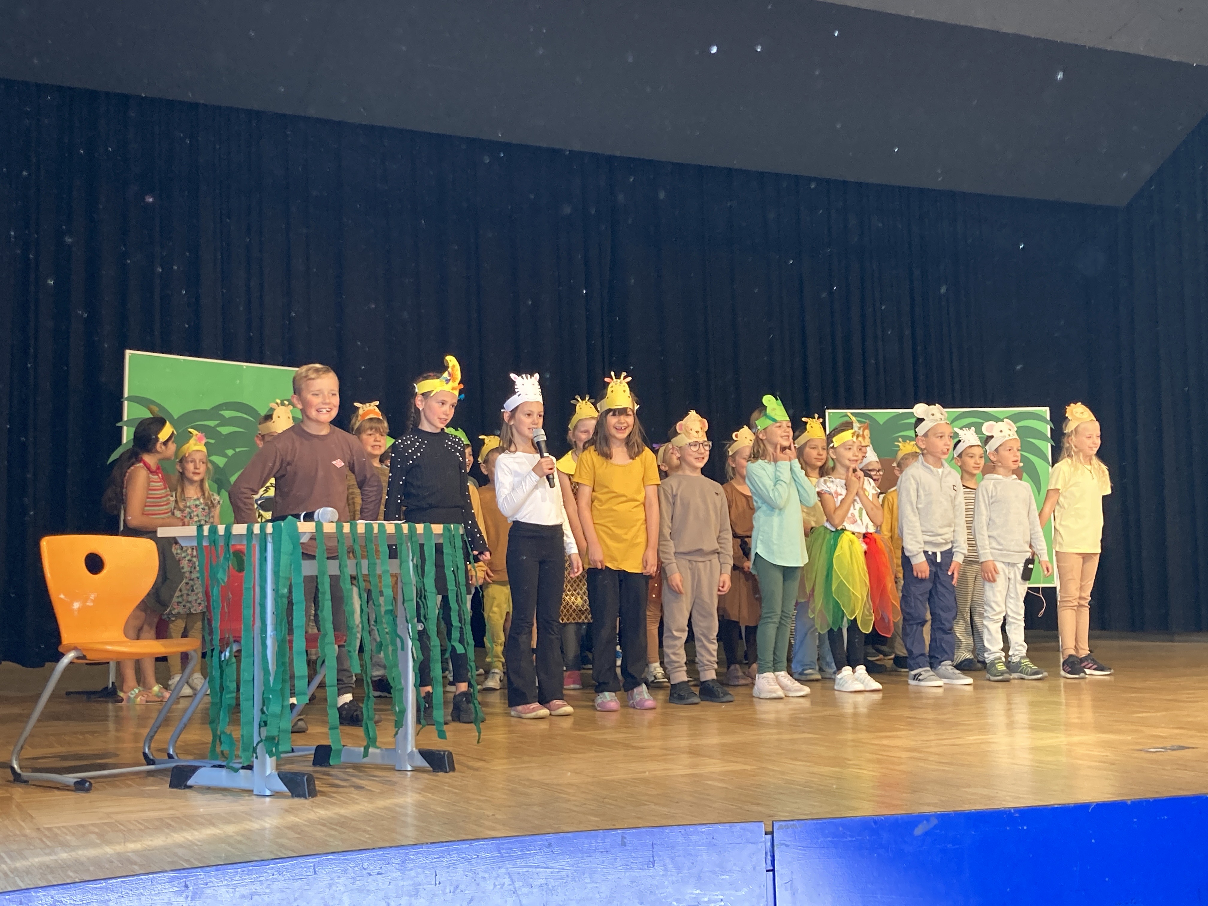 Die Einschulung begann mit einer feierlichen Begrüßung in der Festhalle durch unsere Zweitklässler. Diese führten das Theaterstück „Der Löwe in dir“ auf. In diesem Stück erlebten die Kinder eindrucksvoll, dass jedes Kind „mal Löwe und mal Maus“ sein kann. Anschließend ging es für die Erstklässlerinnen und Erstklässler zu ihrer ersten Unterrichtsstunde in die Klassenzimmer, während die Eltern die Gelegenheit zum Austausch im Elterncafé hatten. Wir freuen uns auf die gemeinsame Schulzeit und wünschen allen Kindern einen fröhlichen, erfolgreichen Start!