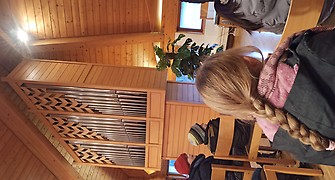 In der Woche darauf, am Mittwoch, den 29. Januar, begrüßte uns Herr Pfarrer Krech in der evangelischen Kirche. Die Kinder stellten viele Unterschiede zur etwas größeren, katholischen Kirche fest und hörten interessiert zu, als Herr Krech vom Brand der früheren Kirche und vom Aufbau der heutigen Kirche berichtete. Ganz fasziniert lauschten wir Herr Krechs Orgelspiel.