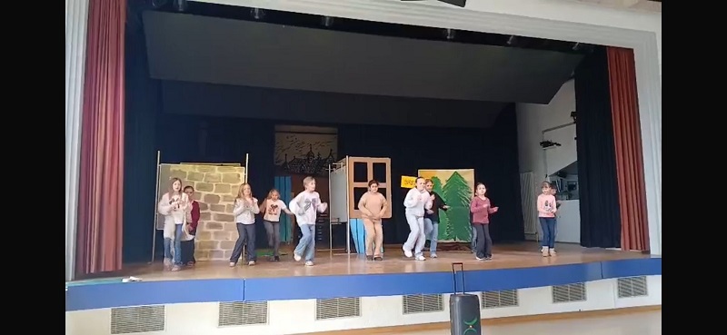 Sport-AG mit ihrem fröhlichen Tanz zu „Cotton Eye Joe“ auf die Bühne. Den